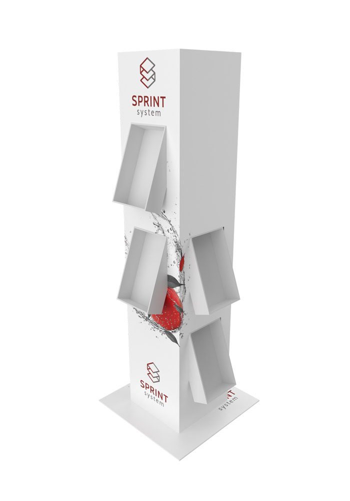 Sprint System is a universal and patent-protected cardboard display system designed to significantly simplify installation, reduce logistics costs and at the same time offer maximum flexibility of use. It is a solution that saves time, space and budget.
