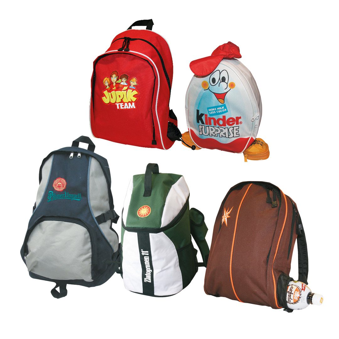 - Branding and details: Various printing technologies, woven labels in seams, embroidered logos, metal carabiners or custom-designed zip pullers (rubber, metal or leather).